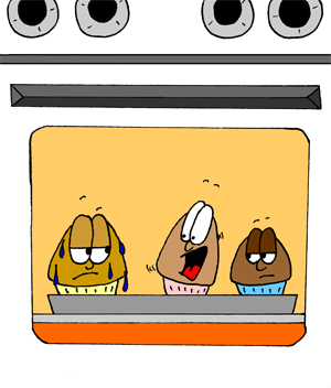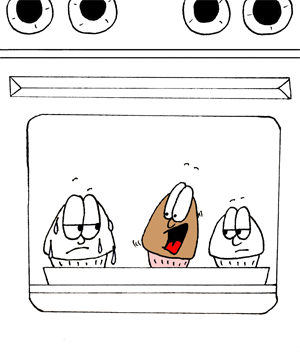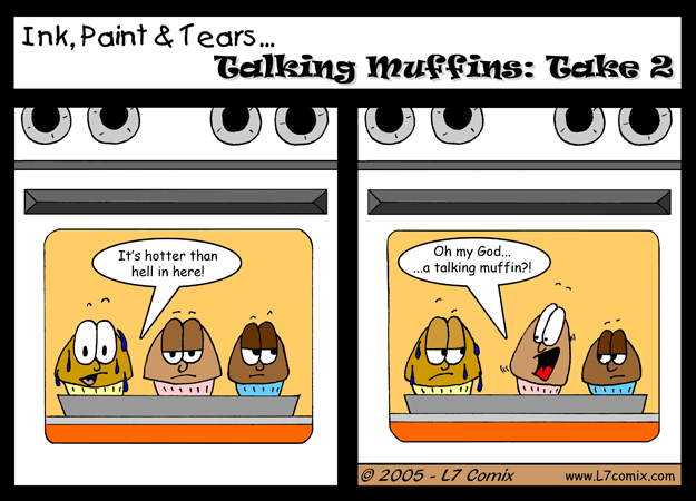 Now that the hard part's done, all that's left is to add the speech bubbles and come up with a catchy title. First the text straight from the script is added to the panels (using the font Comic Sans MS, of course), then the bubbles themselves are created around each blurb by simply selecting an area with the elliptical marquee, adding an anchor with the lasso tool, and then (on a new layer) filling the selected area white. A nice, thick black border is added to all of the bubbles on that layer when completed, and viola! Once the title, copyright and website link have all been placed accordingly, for the most part the strip is officially done.