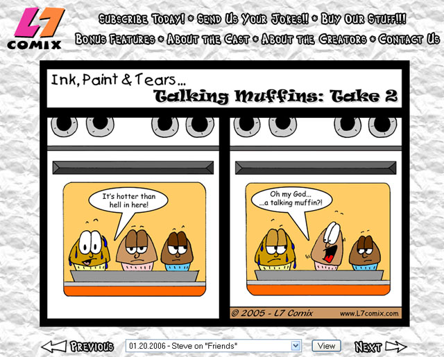 As a note, it's definitely a good idea to hold onto that high res copy, even if it means burning them onto CDs or something, because there's certainly a noticeable difference in quality if you ever want to print your strips out for sale or even just your own personal use. Our final copies end up saving out at around 3395x2444 pixels @ 300 dpi for a 5.5MB PSD file and 625x450 pixels @ 300 dpi for a 150KB PNG file. The later looks great when viewed online, but in order to have a printed image that you'll be content with, a high resolution image is a must.